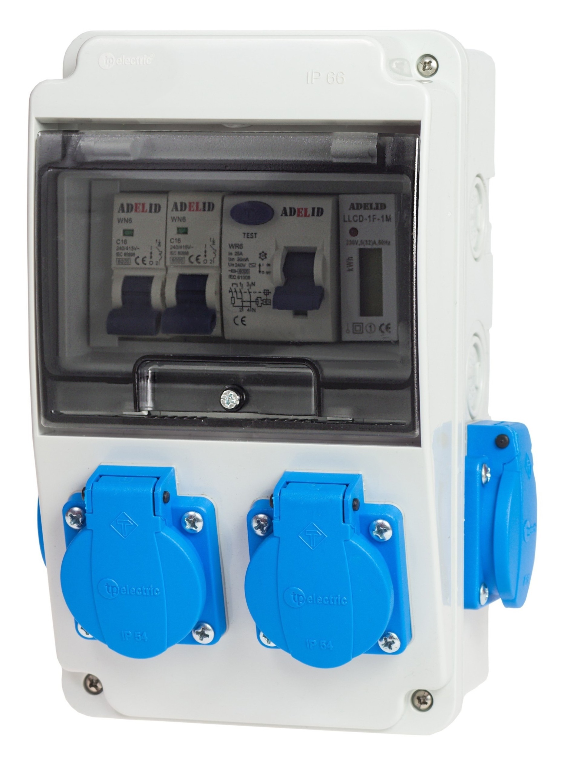 Dzięki licznikowi LLCD 1F, rozdzielnica może być wykorzystywana do rozliczeń finansowych ,4x gniazdo 16A 230V, podpięte pod 2 bezpieczniki B16A 1P,